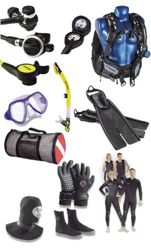 ADVENTURE READY!0 INSTANT REBATE Take advantage of our Oceanic Complete Cold Water Scuba Gear Package. Take advantage of this special offering now. Buy This ::::::::::::::::::: OCEANIC NEO 2 MASK: The widest viewing area possible in a two lens mask. Huge wide design makes recognizing your dive buddy that much easier and allows maximum light for increased visibility. Great for underwater photography both behind and in front of the camera. New highest grade ultra soft 100% liquid silicone skirt for a positive seal and long life. Ultra-low volume design for better visibility and easier clearing. Tempered glass lenses for safety. Easy to adjust, swiveling buckles. Lightweight frame. OCEANIC ULTRADRY SNORKEL: The name says it all. Designed to be exactly what its name suggests, the ULTRA DRY snorkel incorporates Oceanic's patented Dry Snorkel Technology into an ultra-low-profile product that is ergonomically designed for comfortt and function. This technology creates a seal to virtually eliminate water entering the snorkel barrel, while achieving superior air flow performance on the surface. Oversized purge valve for easy clearing. Quick-release swiveling snorkel keeper. Drop away smooth bore flex mouthpiece. Mouthpiece and purge valve are both replaceable and made of 100% pure silicone.OCEANIC VORTEX V12 OPEN HEEL FINS: Power and efficiency for all! The Vortex Fin series are an engineering revolution, designed from the ground up to deliver what others only promise - enhanced speed and efficiency with virtually no effort for every diver, regardless of size, strength or kicking style. Patented Nature's Wing propeller fin technology. Duroprene and natural rubber materials for ideal flex and memory. Oversized side rails add rigidity to the oversized blades for increased lift and efficiency. Ergonomically designed foot pocket accommodates virtually all foot sizes and boot styles. Angled blade for preferred angle of attack. Easy on/off thumb loop. Easy adjust quick-release